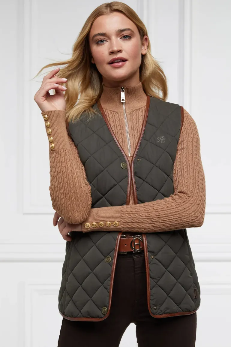 Inspired by our quintessentially British heritage, this piece has been designed with a relaxed silhouette. Showcasing Holland Cooper’s diamond quilting with a sorona fill, this lightweight gilet is both functional and stylish in design. With a faux leather trim and crested snap fastenings, this piece has been enhanced with hidden pockets and brass detailing.