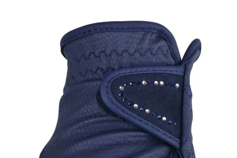 These gloves certainly have the wow factor, with the beautiful rose gold and navy diamantes, these gloves are very stylish. The synthetic PU material provides an excellent feel on the reins and is reinforced in certain areas for durability. Featured on the glove is the touch tape wrist fastening and the elastic cuff, ensuring a perfect fit.