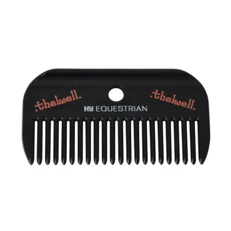 The Hy Equestrian Thelwell Mane Comb is part of the Thelwell Collection. Plastic mane combs are an essential part of any grooming kit. This comb is easy to hold and perfect for combing mane and tails. Available in Black. Size Guide Available in one size.
