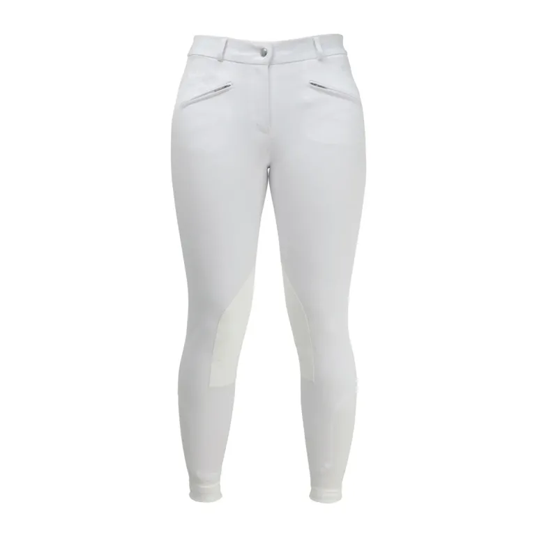 These smart breeches are the perfect choice for competition or everyday riding. Reinforced Alos knee patches and a no bulk stretch hem ankle combine with the comfortable, 4 way stretch material of the breech to create a secure fit. With two front zip pockets to keep your possessions safe whilst riding, these easy to care for, practical breeches are a great addition to your equestrian wardrobe.