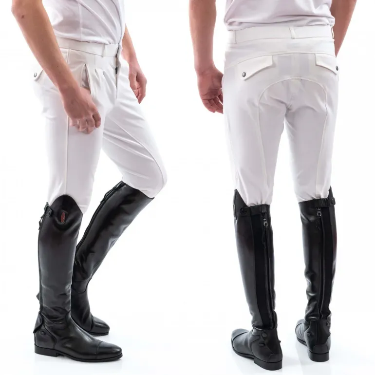 Made from a soft touch 88% Polyester, 12% Spandex mix for a firm yet comfortable fit, exceptionally breathable 4-way stretch performance fabric. The opaque four-way stretch fabric is quick drying and breathable, offering movement and comfort, whilst the pleated design ensures an unrestricted fit. A specially contoured subtle silicone seat, aids security in the saddle, whilst displaying a smart and professional appearance.