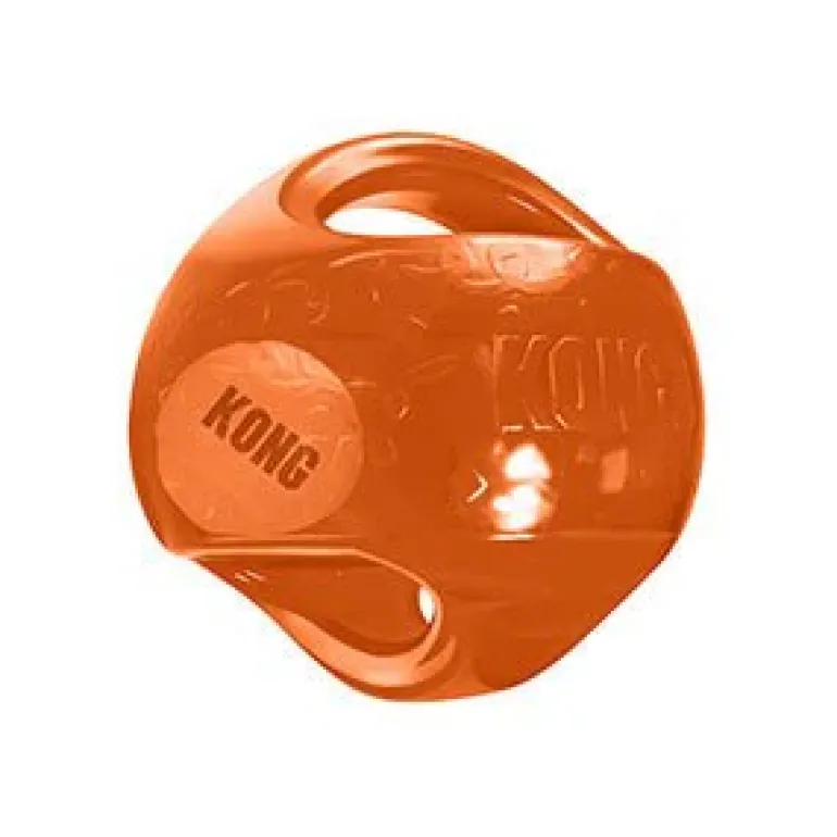 The KONG Jumbler is a two-in-one ball toy for twice the interactive fun. The interior tennis ball and loud squeak entice play, while the handles make pickup and shaking easy. The Jumbler stands up to tough play, making it ideal for games of fetch. Available in two shapes and sizes, the KONG Jumbler will ensure an exciting, active play session for you and your dog.