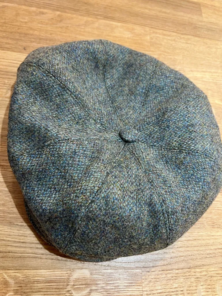This modifed version of our 8-piece cap, with a band around the crown, also carries a curved peak. It is ‘open-fronted’ (no hand-sewing, no press-stud) and offers a stylish look for those country walks.