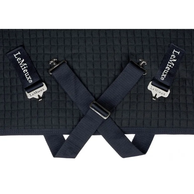 The multi-layered structure of the LeMieux Arika Clima-Tek rug has a unique wool and acrylic blend, making it perfect for moisture management. This structure controls muscle temperature during the cooling process, allowing for effective moisture wicking without cooling muscles too quickly making this rug perfect on chillier days