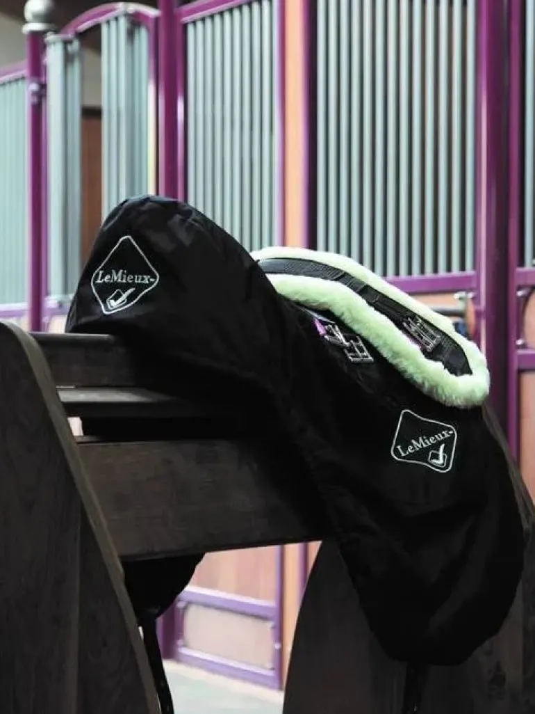LeMieux ProKit saddle cover is made of a durable, waterproof polyester outer with a soft fleece lining to protect the saddle. Waterproof rating of 3000mm.