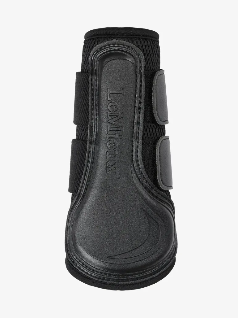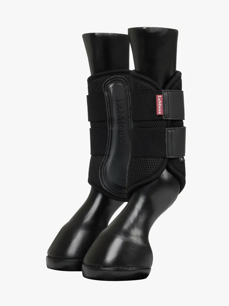 These lightweight boots have a perforated, breathable mesh lining, a protective, grained PU leather palm, and neat PU leather hook and loop tape straps. The 3D mesh outer places these among the most breathable brushing boots on the market. Soft and smooth binding around the outer edges prevents rubbing.