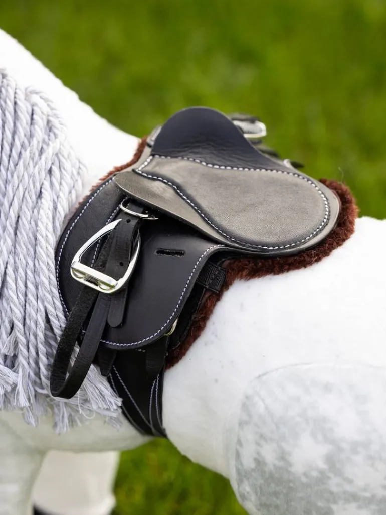 Just like the real thing, this miniature numnah is crafted with a high-quality suede effect outer and a soft faux fur lining. Elasticated straps ensure a secure fit to the saddle (which is sold separately).