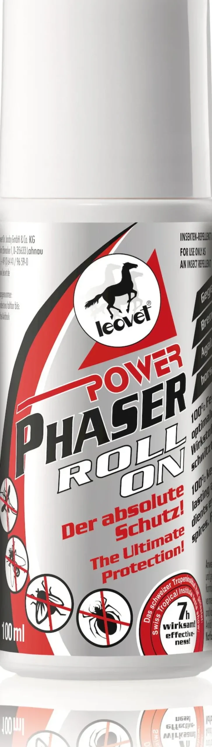 Absolute protection against mosquitoes, horseflies, flies and ticks. Tested and approved by the Swiss Institute for Tropical Medicine: guaranteed to be absolutely effective in repelling insects for seven hours. Permanent adhesion for seven hours, even if the hair becomes wet or sweaty.