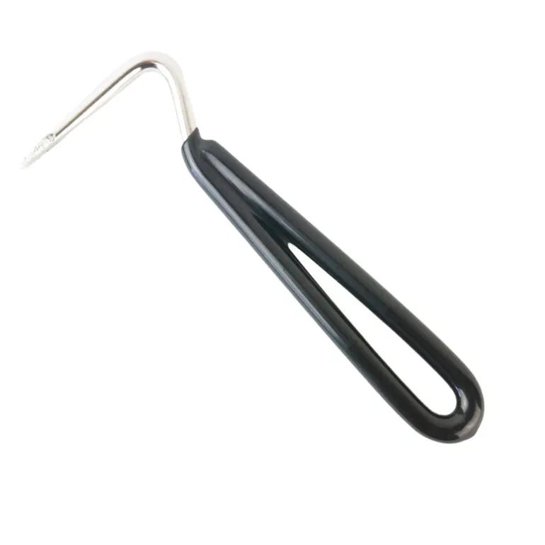 The Lincoln Vinyl Handle Hoof Pick has a metal pick and vinyl handle which has ben hollowed for easy hooking.