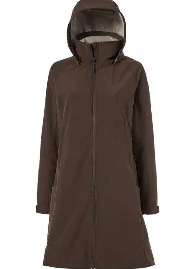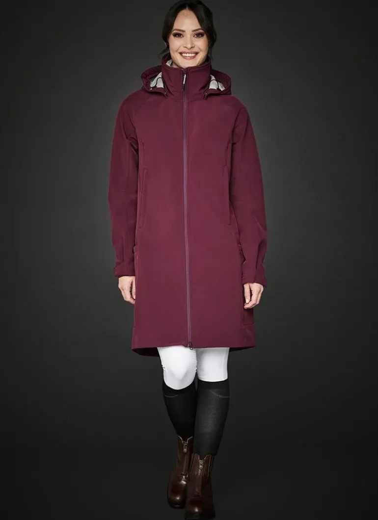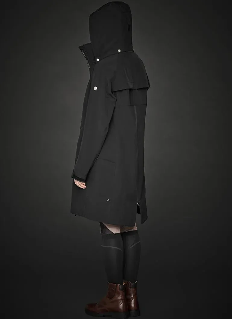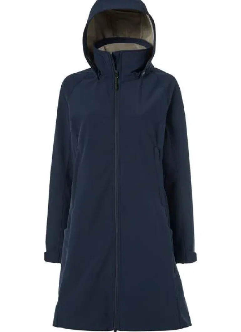 Functional water and wind repellent softshell parkas with a feminine fit. Lined with soft teddy, Long zipper opening at back and detachable hood.