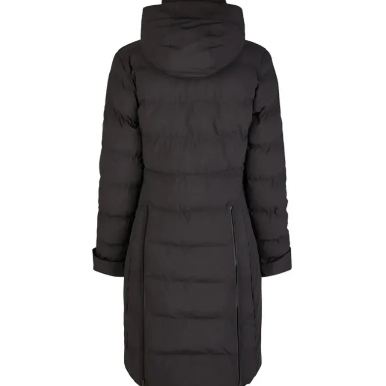 This coat is equipped with an adjustable hood featuring cord stoppers for a snug, customisable fit. The zippers are designed for smooth and effortless fastening, while turn-up cuffs with popper adjustments offer additional protection against the cold. Practicality is at the forefront with applied flap pockets that feature MAGNET CLICK closures, along with additional zip pockets on each side for secure storage.