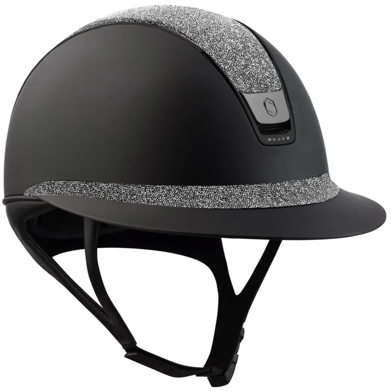Exquisite materials – polycarbonate, a material found in top-tier motorgear – coupled with an anti-scratch paint give the Shadow Helmet unparalleled form and function. Embedded around the helmet’s contours, up to 300 Swarovski crystals provide a glimmering accent to the signature edging. Advanced ventilation optimizes airflow with this helmet’s 6-point system. Ergonomically designed, the integrated chinstrap offers the perfect fit for all hairdos, including a trainer’s bun. Memory foam ensures a consistent thickness over time, while a semi-rigid chinstrap prevents hazardous tipping. Inside, variable-density polystyrene diffuses energy from impacts, accompanied by a removable comfort foam secured via a reliable clip system. Finally, the foam can be washed at 30°C for a permanently clean and pleasant aroma.