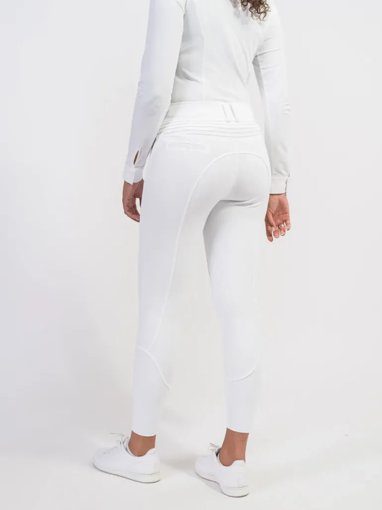A flattering high-waist fit guarantees optimal riding comfort, while technical fabric ensures breathability, flexibility, and moisture wicking. Embellished back pockets add a touch of style, while the signature grip system improves stability. Streamlined seams complete the look.