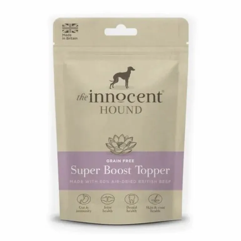 Our Super Boost Topper is a nutritious and delicious supplement containing a powerful blend of natural active ingredients to promote your dog’s overall wellbeing. Our unique blend is designed to support your hound’s physical health which can consequently have a positive effect of their mood and behaviour. Made with the finest ingredients, we gently air-dry our products to maintain nutrients and flavour. Your hound will love the taste of Super Boost Topper when you sprinkle it over their meal.