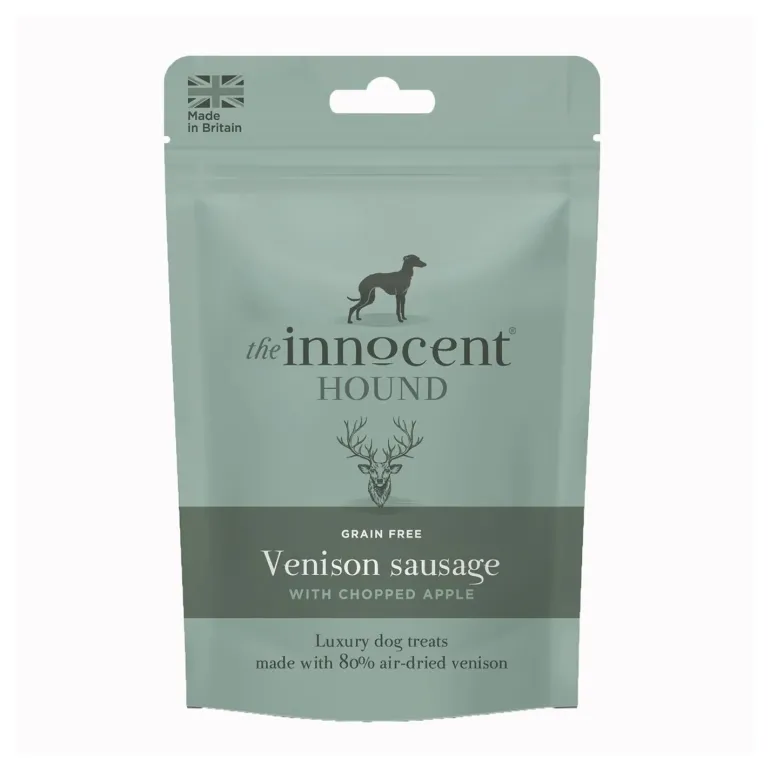 Our indulgent Venison Sausages with Chopped Apple are hand-made by us in Yorkshire using sustainably sourced British venison. Made with the finest ingredients, we gently air-dry our treats to retain their nutrients and flavour. A real treat for your innocent hound.