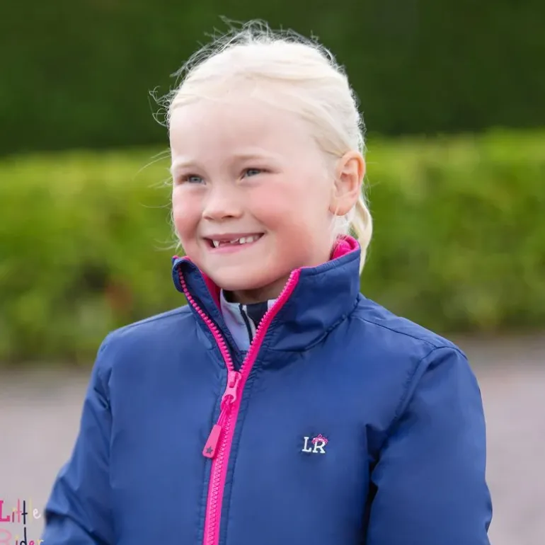 Waterproof and wind resistant with fully taped seams, this padded blouson jacket is perfect for cold and wet days. The faux down and feather free filling holds the heat close to your body, keeping your Little Rider snug and warm, whilst the micro fleece lined collar offers extra protection from the elements. Featuring practical pink zipped pockets including inside pocket, pink two-way zip with crown detailing and elasticated varsity style pink and navy hem and cuffs. Finished with the Little Rider logo to the left chest.